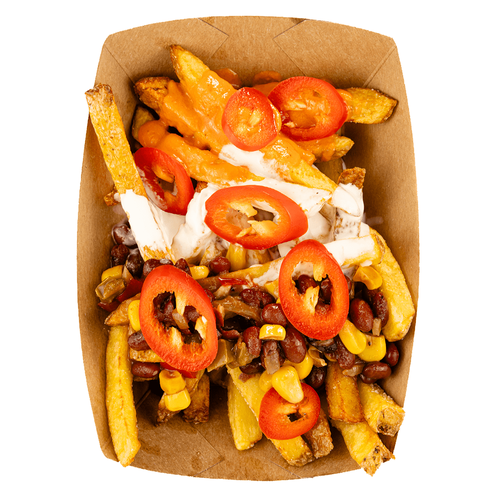 Uma explosão de sabor que combina batatas fritas crocantes com chili sem carne, um irresistível molho de queijo picante, sour cream cremoso e rodelas de jalapeños. Esta versão ousada da clássica poutine é perfeita para quem aprecia um toque picante e uma textura cremosa e envolvente.